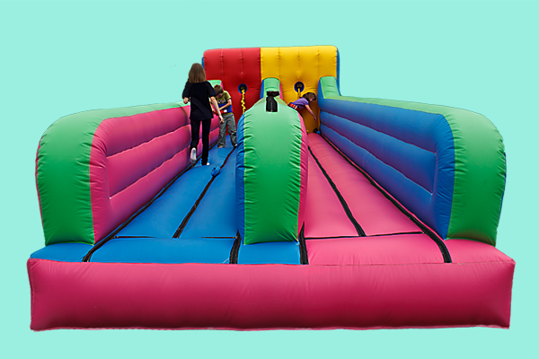 Riesenspaß für Groß und Klein. 2 Personen rennen gegeneinander. Wer kommt am weitesten?