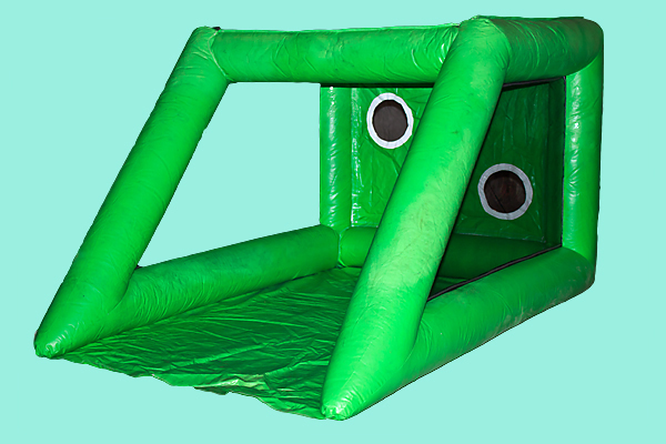 Aufblasbare Torwand mit Netzen an Seiten und Rückwand.